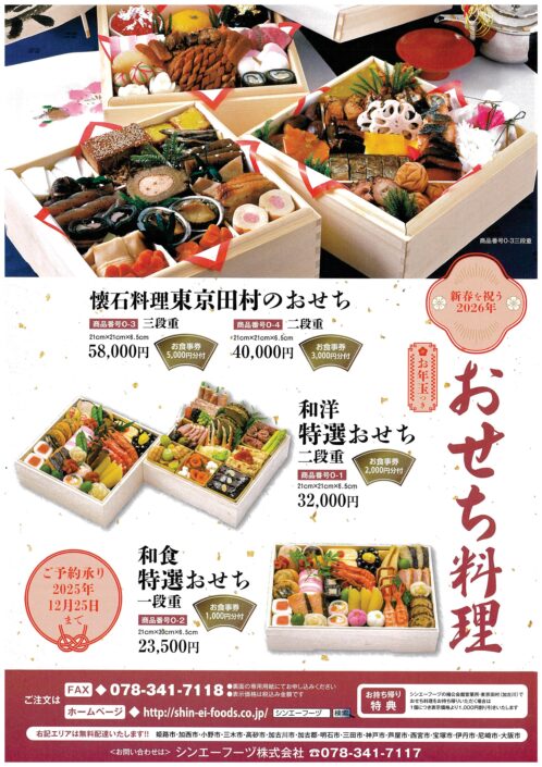 新しい年はシンエーフーヅのおせち料理とともにお迎えください。