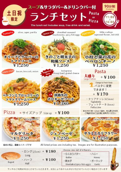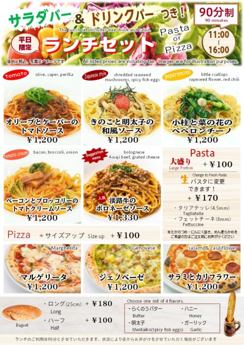 ・ 淡路牛のボロネーゼソース ¥1,330(土日祝のみ¥1,380)土日祝のみ¥1,350土日祝のみ¥1,350don土日祝のみ¥1,350土日祝のみ¥1,350